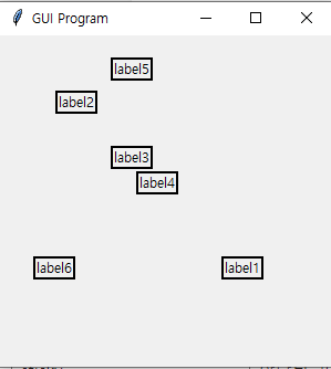 위 예제 코드를 실행하면 설정된 좌표값으로 배치된 위젯들을 확인할 수 있습니다.